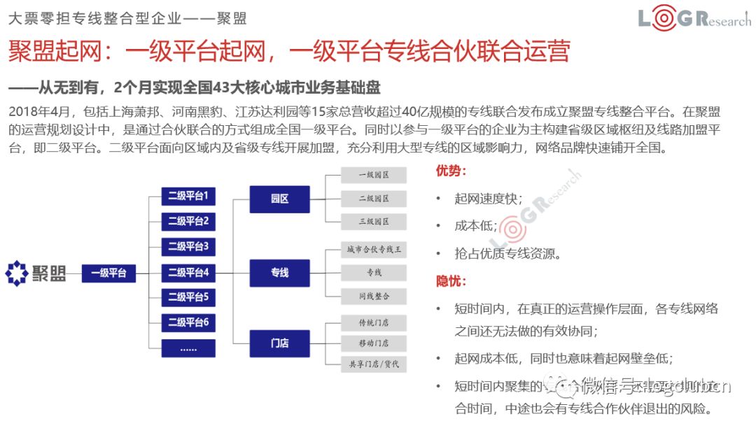 由于轻起步,所以起步快。在短时间内迅速建网,使得聚盟在一众新起的大票零担专线整合型企业中脱颖而出,成为一颗冉冉升起的新星。现阶段看来,聚盟的这张网络强化在品牌和系统层面,后续如何在运营操作层面联网,这才是物流运输的本质。